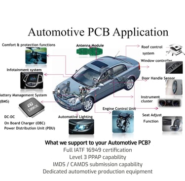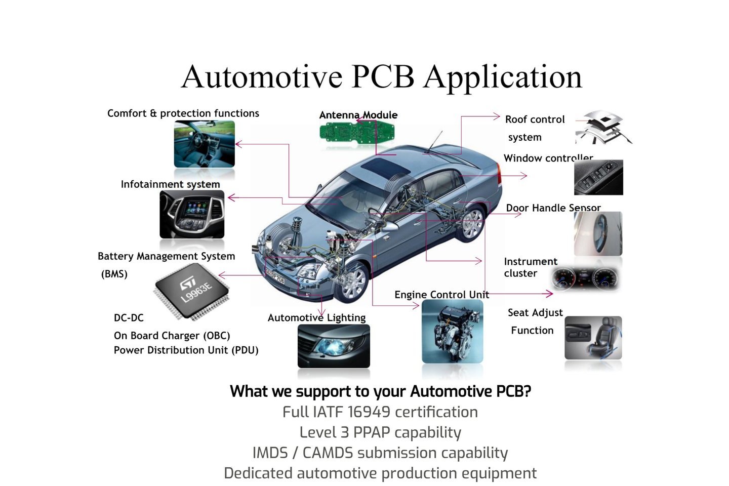 Applications include: automotive, security, consumer electronics, communication systems, industrial control, medical devices, EMS, and both rigid and flexible PCBs