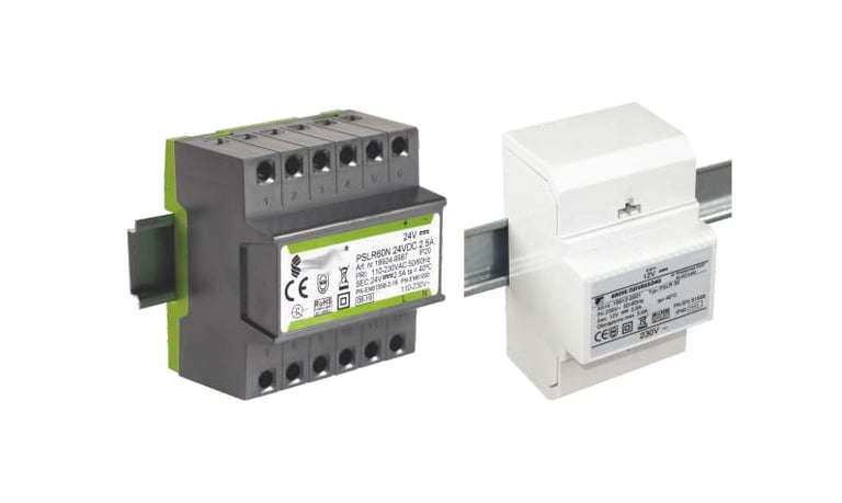 Encapsulated DC power supplies designed for mounting on T-35 busbars (PSL, PSLF) or in enclosures with IP54 protection rating (PVL, PVLF).