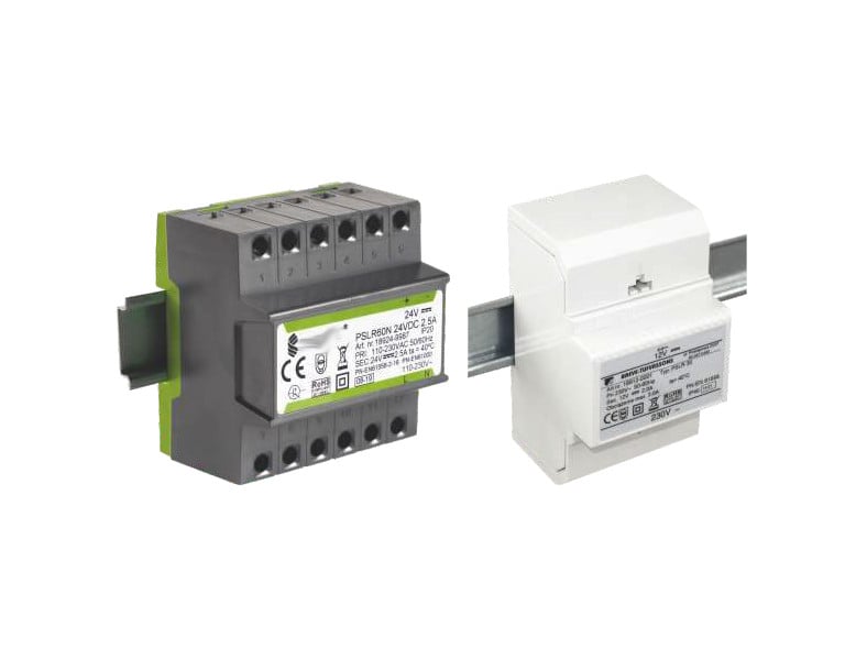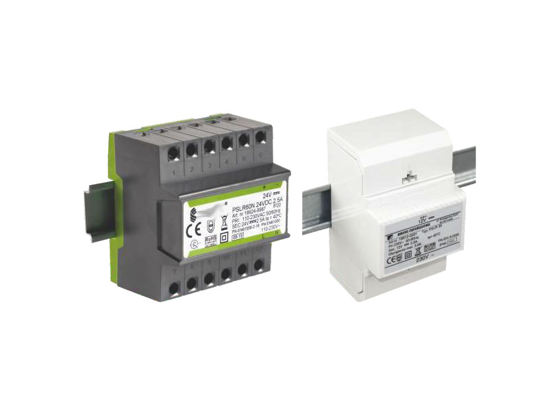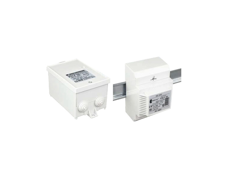 Fuentes de alimentación encapsuladas con salida de corriente continua diseñadas para montaje en bus T-35 (PSL, PSLF) o en carcasas con grado de protección IP54 (PVL, PVLF).